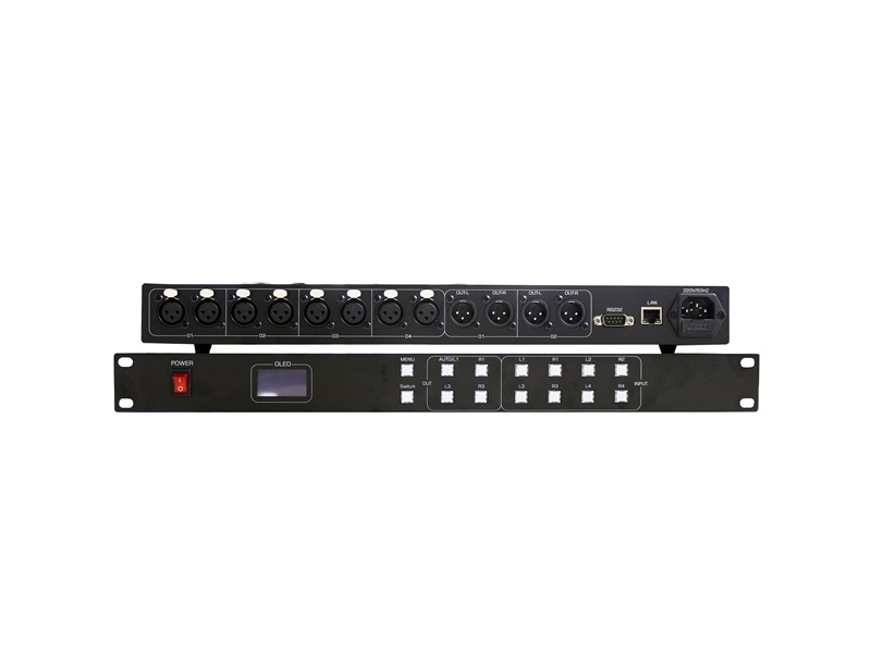 1  | 4進1出雙聲道  | HS-XLR0401A  | ·前面板采用OLED實時顯示當前狀態 ·定時切換功能。 ·斷電直通功能。 ·存儲和讀取模式功能 ·模擬信號自動切換功能(AES不支持此功能),輸入1自動檢測信號丟失,丟失自動切到2進1出,檢測輸入1信號正常自動切換為1進1出,可設置自動切換為雙聲道或單聲道模式 ·斷電記憶模式。 ·采用標準1U機箱。 ·采用進口透明帶燈按鍵。 ·切換狀態按鍵實時反饋功能。 ·軟件切換時面板液晶實時反饋功能。 ·內置110-264V寬電壓設置,適用于各種場所。 ·強大的控制接口保護功能,防靜電、防雷擊。 ·采用全貼片結構在兼顧美觀同時提高設備穩定性。 ·超低功耗設計8進4出功耗10W。 ·多種控制模式:前面板按鍵,軟件控制。  |